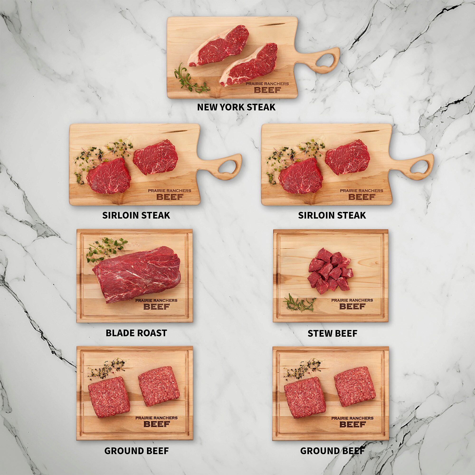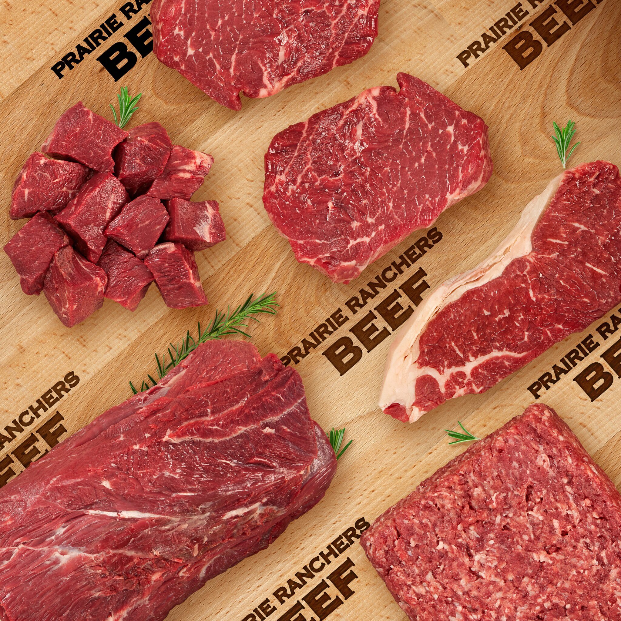A handpicked mix of steaks, roast, ground beef, and stew meat - explore the full range of Prairie Ranchers flavour.